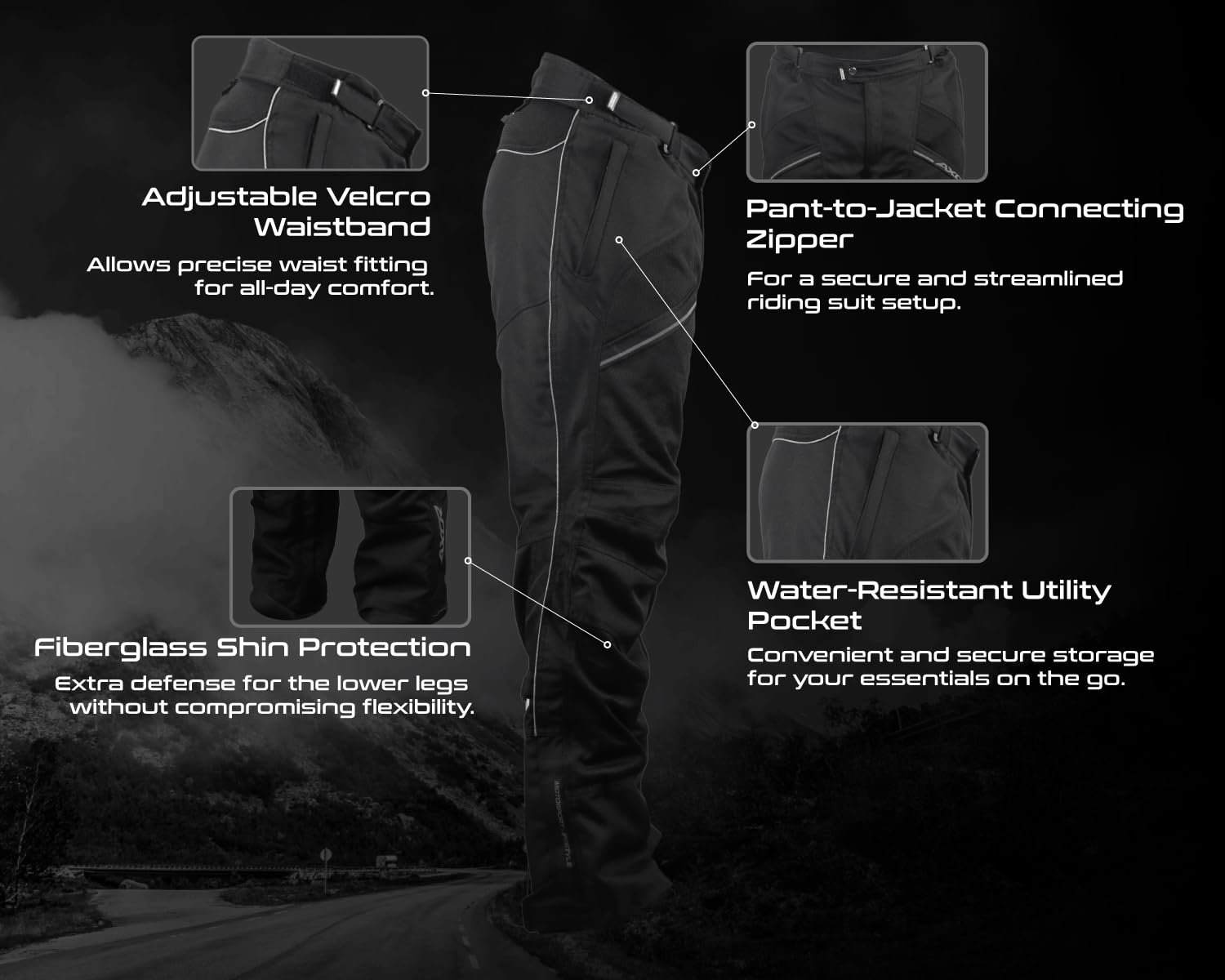 • Pant-to-Jacket Connecting Zipper: For a secure and streamlined riding suit setup.