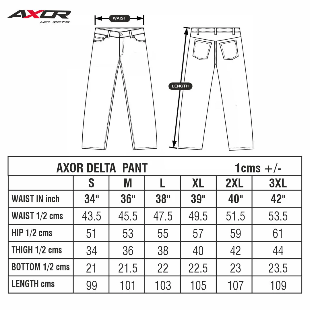 The Axor Delta Riding Pants are durable, protective motorcycle trousers featuring CE Level 2 Safetech armor at knees and hips, tailbone padding, and tough V-Tech 600D fabric for tough conditions, plus reflective TPR pockets for visibility, adjustable waist, and a pant-to-jacket zipper, making them great for touring, commuting, and adventure riding.